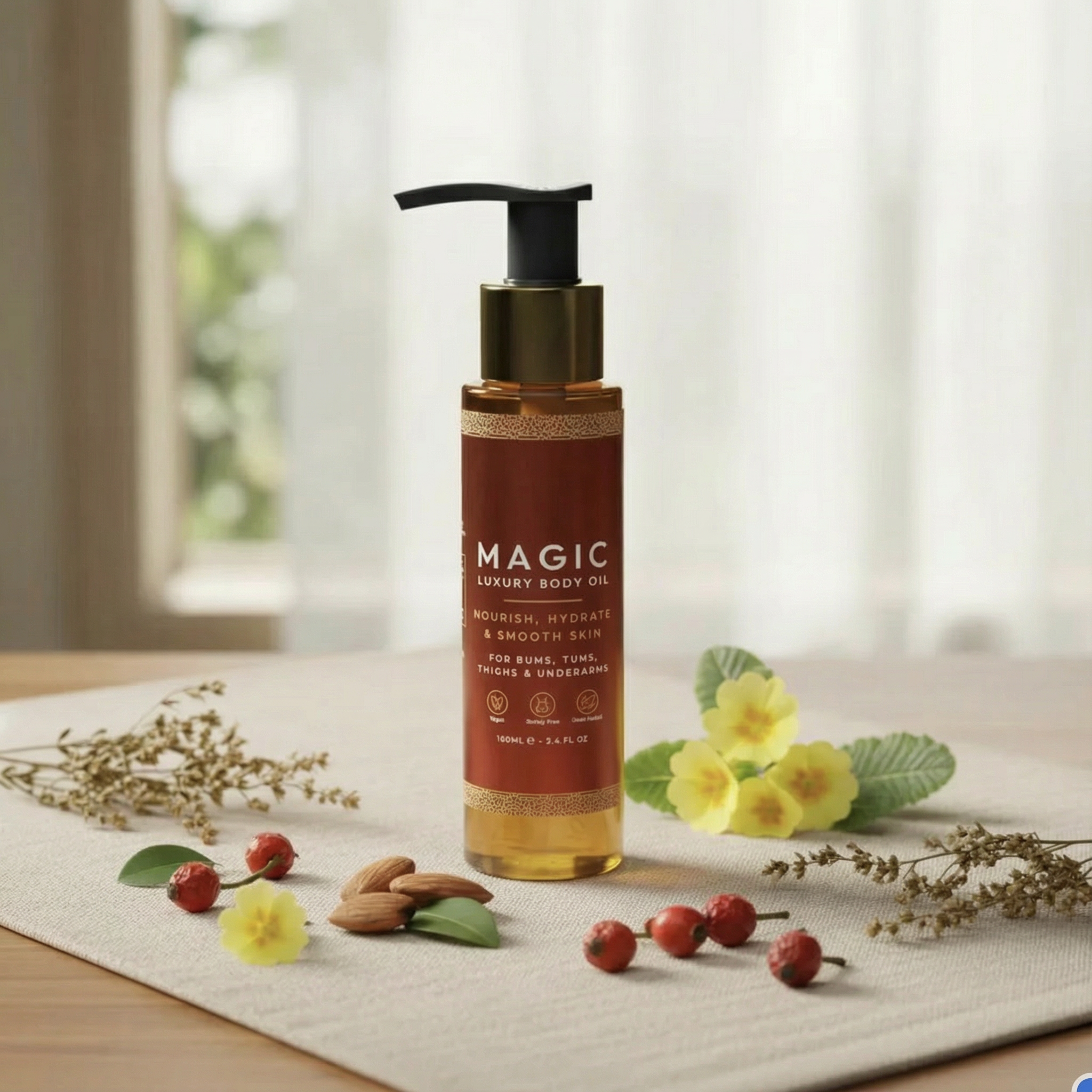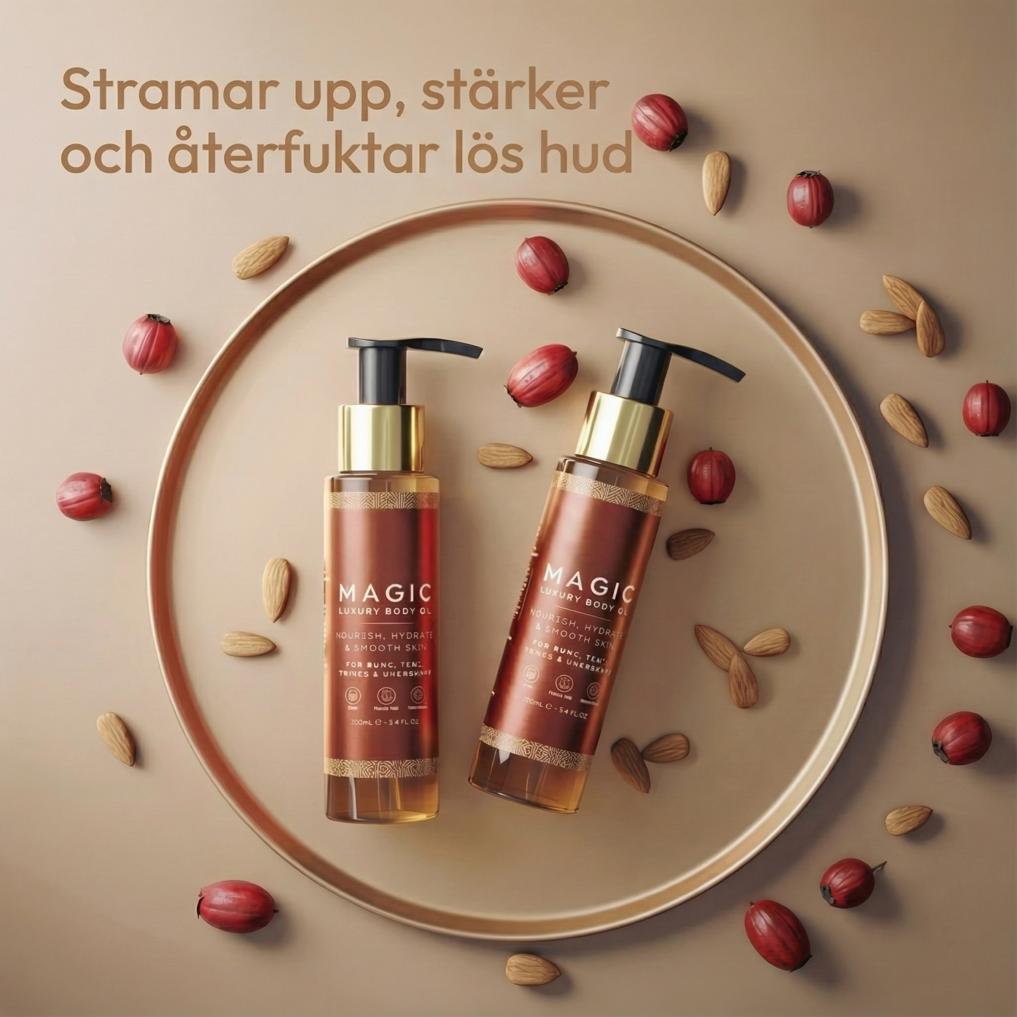 Absolut! Med kraftfulla botaniska ingredienser som mandel och nypon arbetar Besque® Magic Body Oil för att djupt vårda och ge din hud en synbar, tidlös utstrålning. Upplev den strålande skillnaden!
